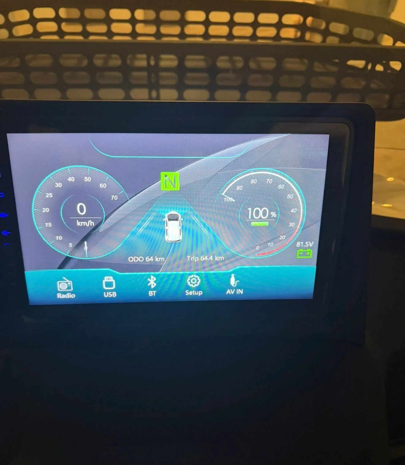 10" molded display screen, waterproof ignition switch, forward/reverse switch, USB charging port, 12V power supply